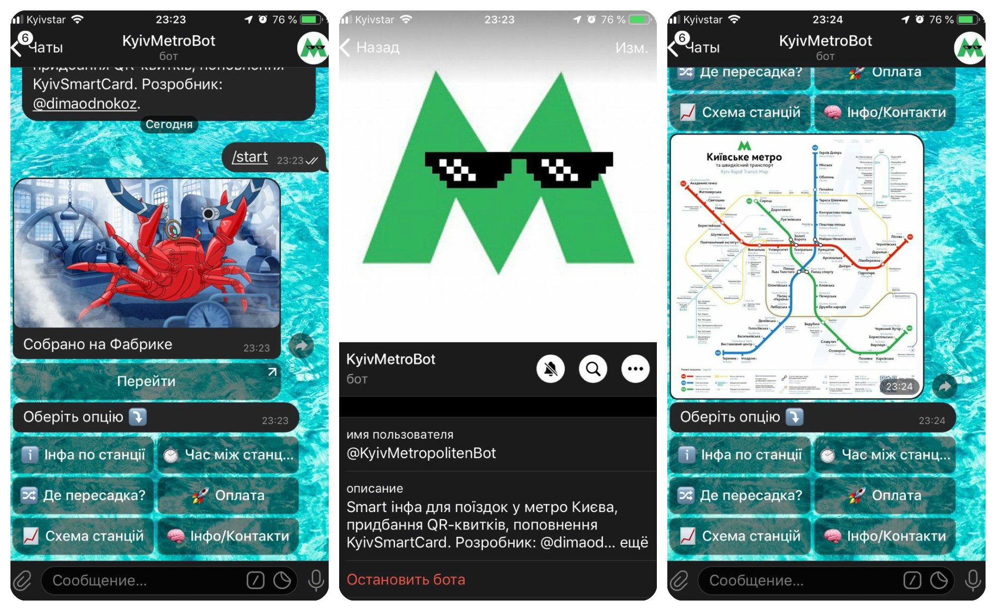 Трудно ориентироваться в столичном метрополитене? Для вас – бот киевской подземки, предоставляющий smart информацию для поездок (в частности знакомит с картой метро и графиком отправления первых и последних поездов), а еще помогает приобрести QR-билеты, пополнить KyivSmartCard и построить маршрут.