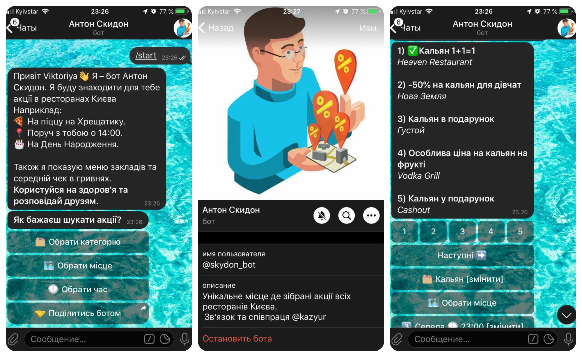 Чат-бот, информирующий о скидках и акциях в столичных заведениях, разработал Андрей Козюра. Еще студентом он понял, что такой помощник будет полезен как ресторанам, так и горожанам. Кстати, мы уже успели пообщаться с Андреем и подробно расспросить о его творении.