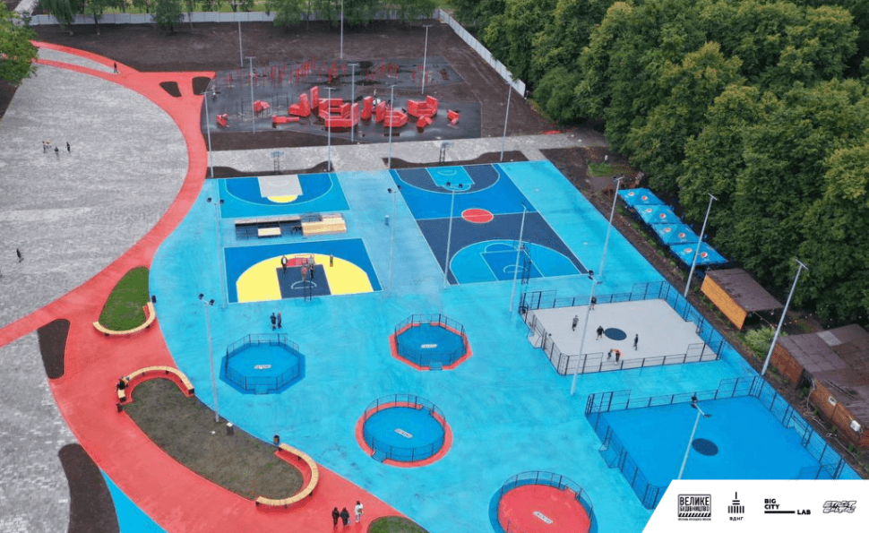Парк безбарьерный, работает бесплатно и круглосуточно. Разработка концепции принадлежит Big City Lab. В нем к вашим услугам — бетонный скейт-парк, стритфутбольный и стритбольный споты, стритденс-спот, стритворкаут-спот, паркур-спот и т. д.