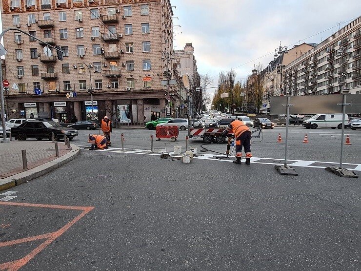 Также впервые в столице на пересечении улиц Соломенской/Головка/Волгоградской/Кривоноса/Шаповала появилась вафельная или коробчастая разметка.