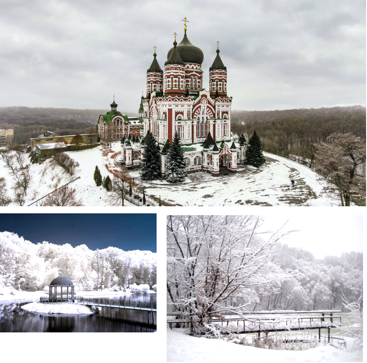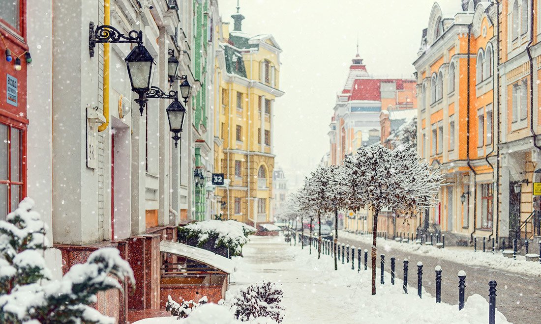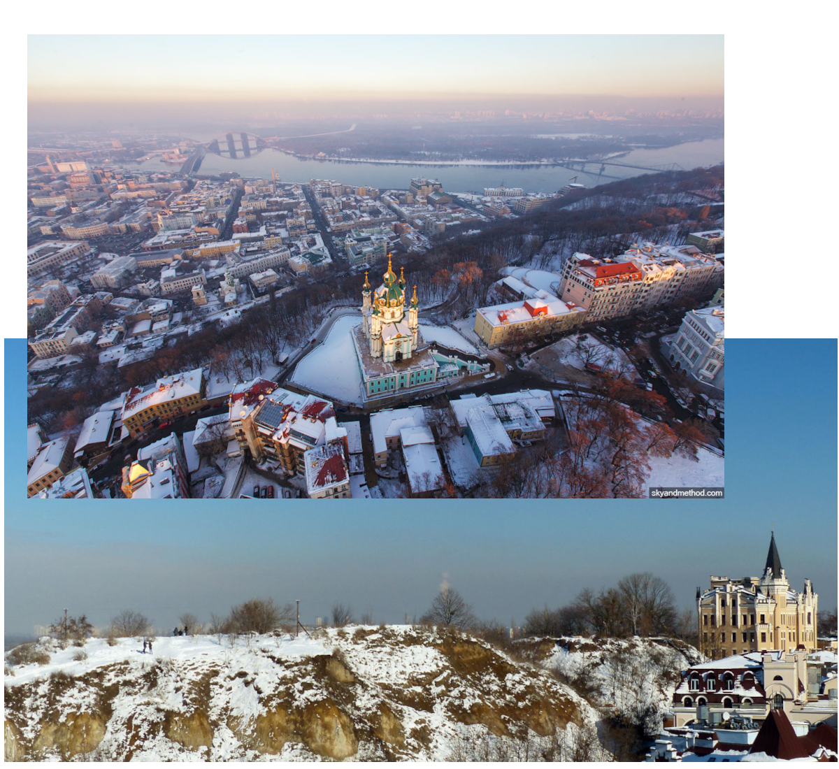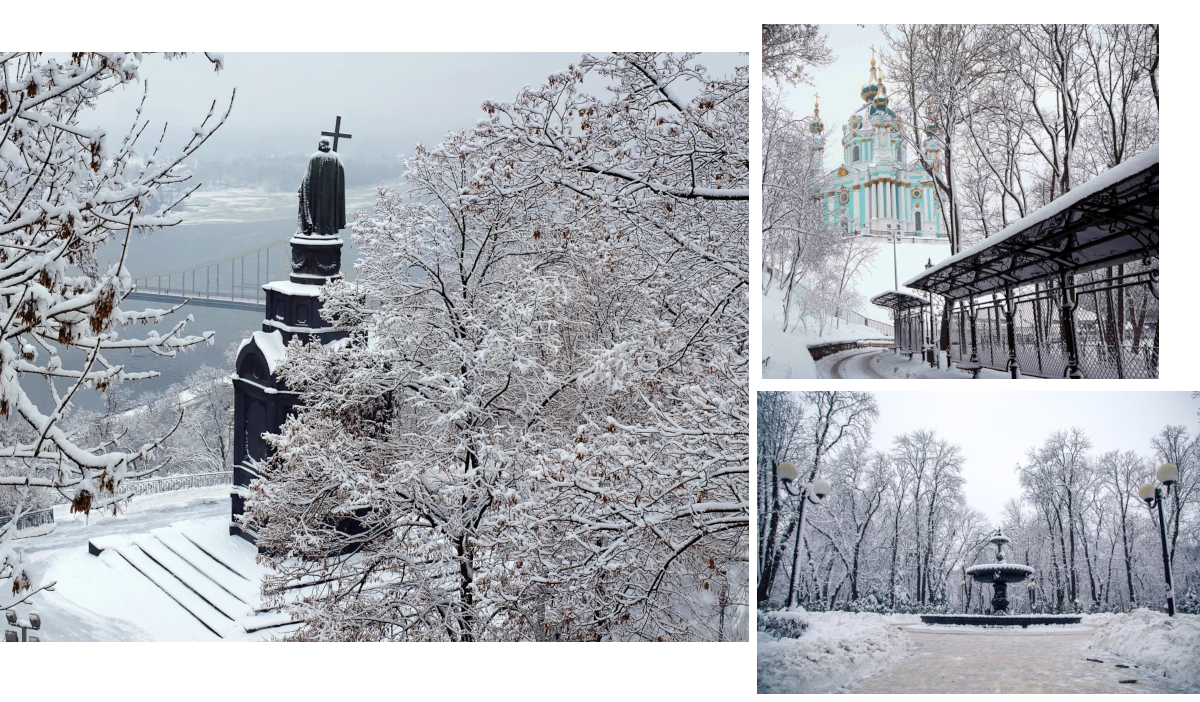 Если говорить о зиме, то в это время интересно смотреть на Киев опять же с верхних точек. Это верхняя часть