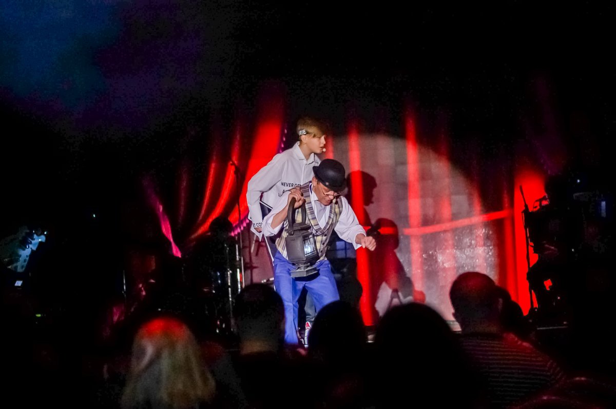 Началось с того, что ведущий вытащил из зрительного зала юношу с планшетом со словами: «Киндер, у нас тут не играют в планшеты, а смотрят на сцену!» Тема взаимодействия старого и нового поколений, их взаимопонимания и того факта, что искусство интереснее, чем все новейшие гаджеты, прослеживается сквозь все представление.