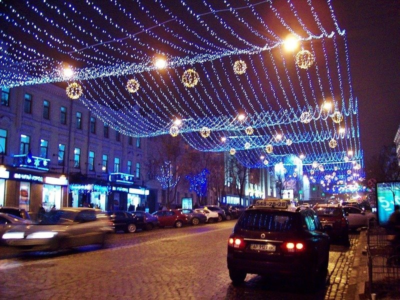 На главной улице столицы засияли около 3-х километров гирлянд и 300 дополнительных светящихся приборов. Праздничное освещение также уже установлено на зданиях Филармонии, Консерватории, Главпоштампе, КГГА. На Майдане Незалежности нарядными фонариками укрылись деревья и различные искусственные конструкции.