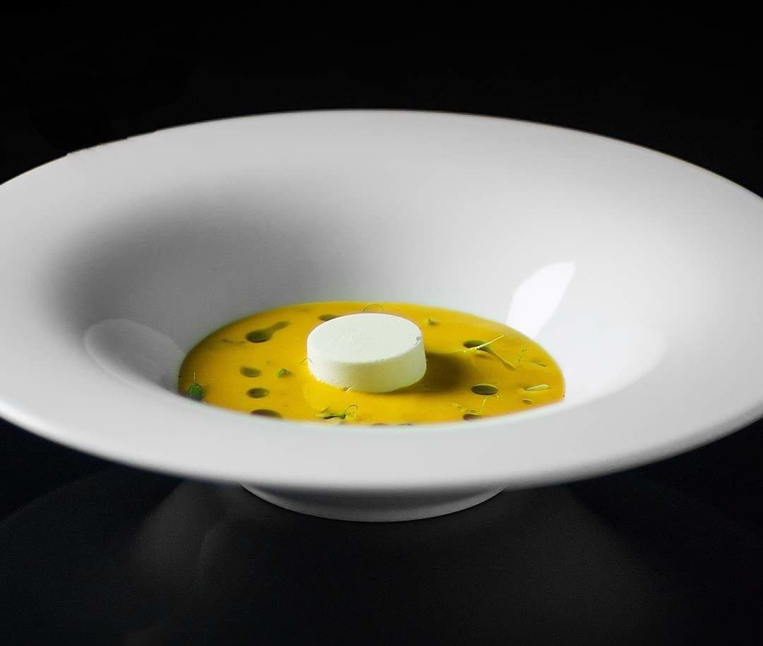 Мастера авторского натурального мороженого студия "Gelarty" с добавлением этого ледяного десерта готовят салаты, закуски и основные блюда. Не обошли вниманием они и супы. Самый оригинальный — нежный тыквенный супчик, вкус которого идеально дополняет мороженое из горгонзолы.