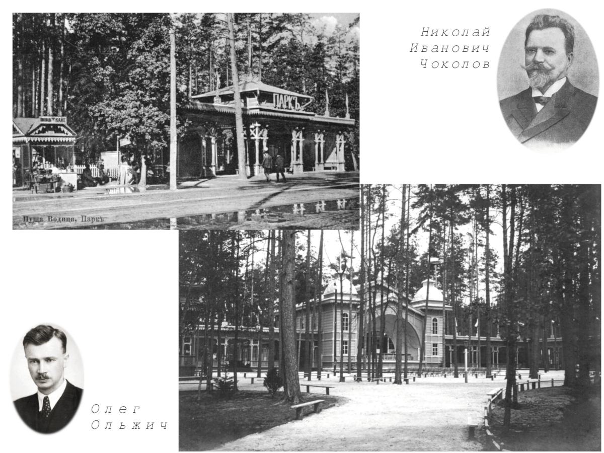 В конце 1890-х годов по инициативе купца и члена городской думы Николая Ивановича Чоколова здесь стартует процесс активной застройки. Пуща постепенно превращается в дачное поселение или некий город-сад. Состоятельные горожане брали себе здесь участки в аренду на 99 лет, возводили деревянные дачи, при этом владельцем угодий с лесами оставалась Киевская городская дума. Вполне понятно, что позволить такие расходы могли только состоятельные киевляне. Среди них: предприниматели, служащие, купцы и интеллигенция. В частности, здесь жил с мамой сын знаменитого поэта Александра Олеся Олег Ольжич.