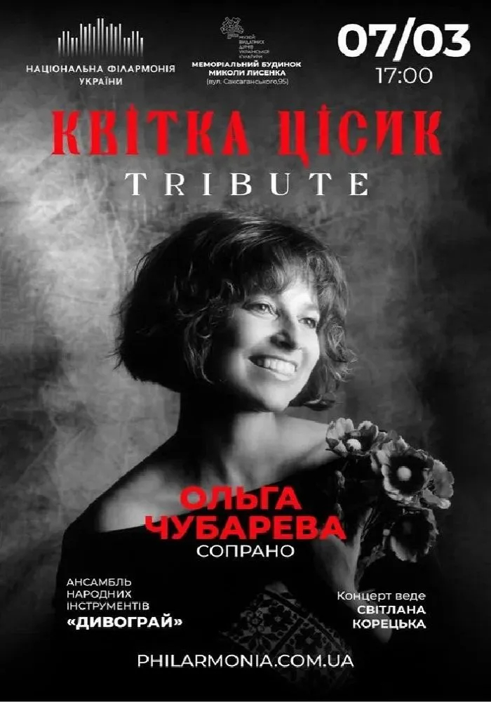 On March 7, the Mykola Lysenko House-Museum will feature songs by the legendary Kvitka Tsisyk.