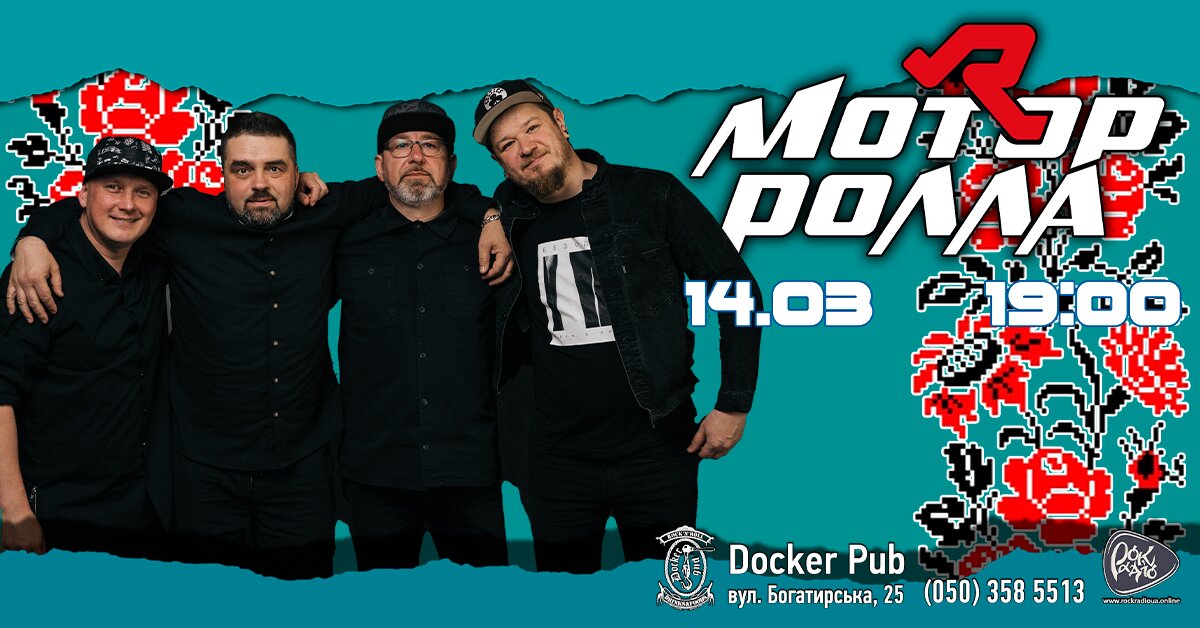 14 марта — Мотор’Ролла в Docker Pub! Встречаем весну громко, по-рокерски! Легендарная украинская группа Мотор’Ролла возвращается на сцену Docker Pub, чтобы подарить вечер, полный драйва, энергии и живых эмоций.