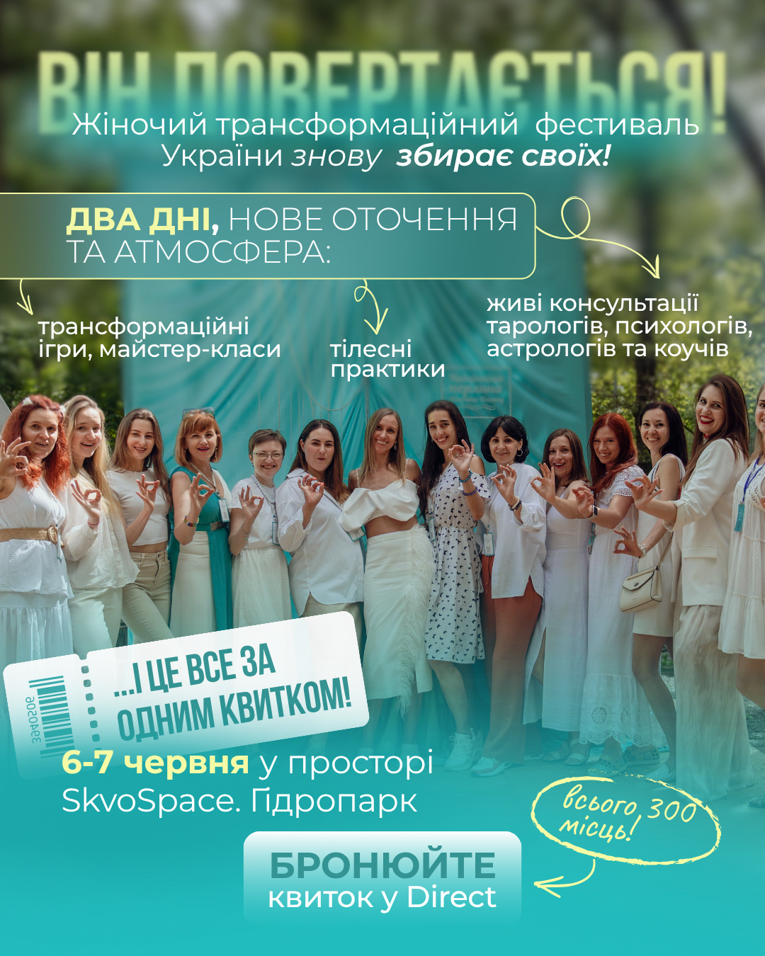 Це жіночий фестиваль, де більш ніж 100 експертів, тілесні практики, трансформаційні ігри.