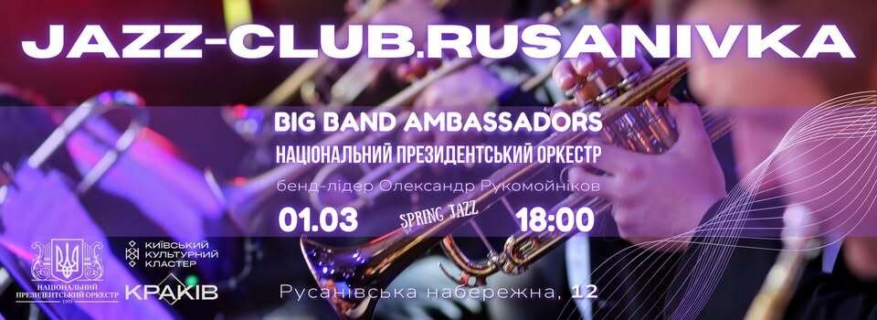 Add to calendar1 марта приглашаем встретить весну под волшебные звуки джаза в исполнении BIG BAND AMBASSADORS Национального президентского оркестра.