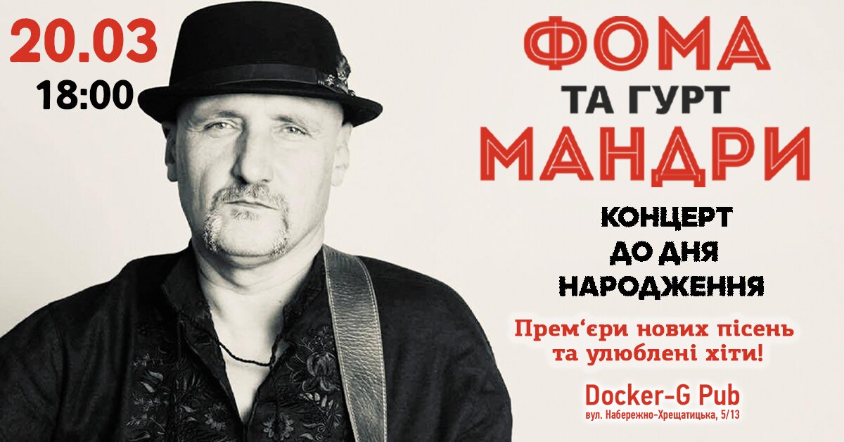 Add to calendar20 марта — Первый весенний клубный концерт Фомы и культовой украинской группы «Мандри»!