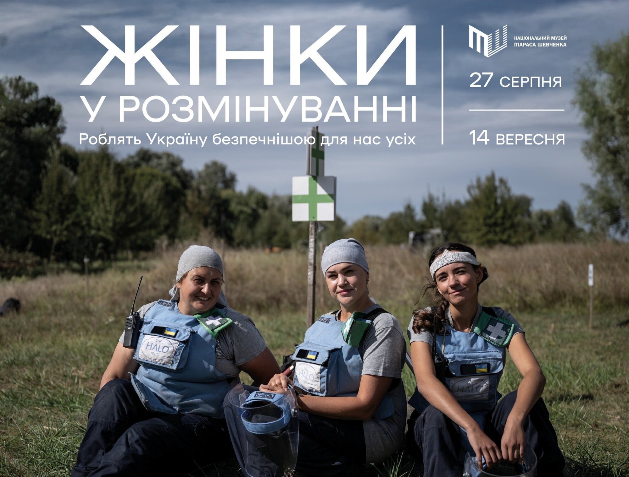 Add to calendar27 августа в Национальном музее Тараса Шевченко стартует масштабная выставка, посвященная украинкам, работающим в сфере гуманитарного разминирования и очищающим родные земли от взрывоопасных остатков войны.