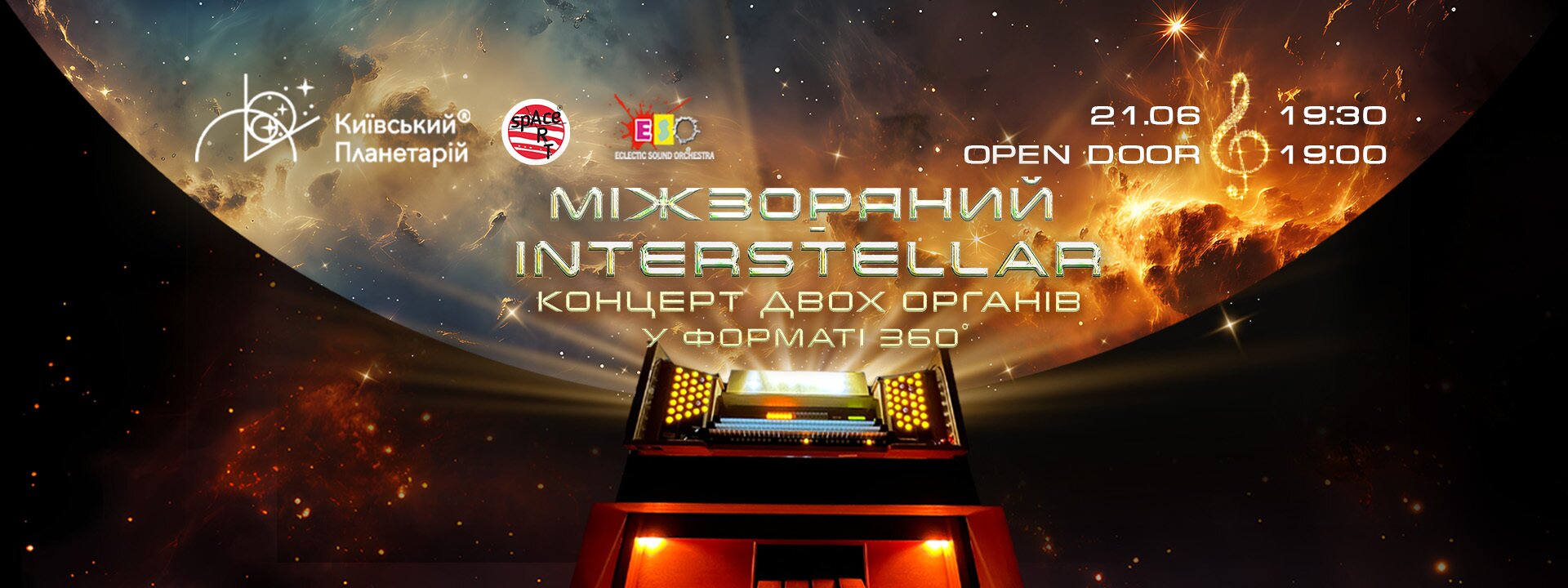 Киевский Планетарий приглашает на полнокупольный концерт – Орган под звездами Interstellar с участием 2 органов и под впечатляющими видеопроекциями 360° на крупнейшем куполе Украины.