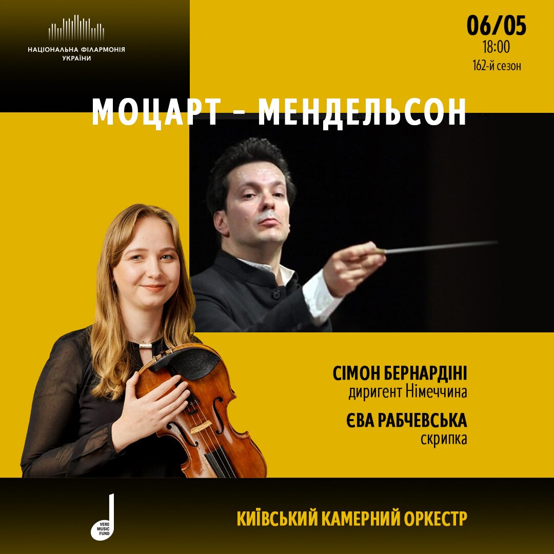 Add to calendarПрограма концерту поєднує ранній, сповнений внутрішньої напруги твір Фелікса Мендельсона та світлу, витончену музику Вольфґанґа Амадея Моцарта.