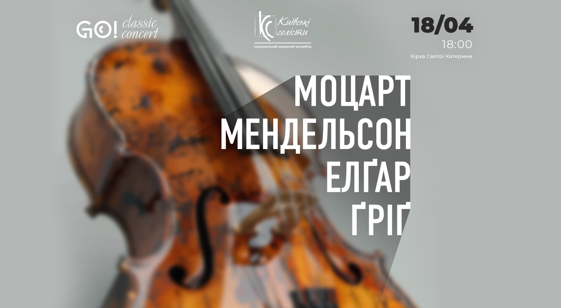 Add to calendar18 квітня в атмосферному акустичному залі старовинної Кірхи Святої Катерини в самому серці Києва у виконанні Національного камерного ансамблю «Київські солісти» відбудеться вишуканий вечір, присвячений творчості чотирьох геніїв — Вольфганга Амадея Моцарта, Фелікса Мендельсона, Едварда Елґара та Едварда Ґріґа.