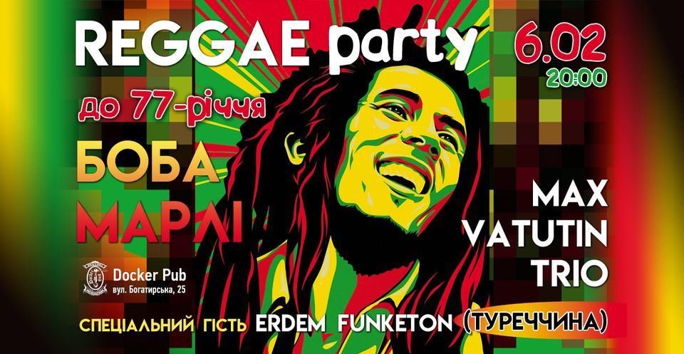 2 февраля приглашаем на Reggae Party в Docker pub к 77-летию Боба Марли!