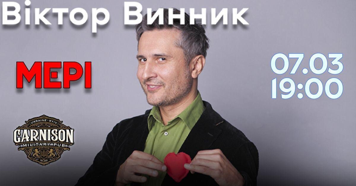 7 марта Виктор Винник исполнит свои лучшие песни, а также приличную порцию нового материала. Посетители в этот вечер услышат такие проверенные временем «боевики», как «Ромео», «Меридіани», «Кісс на бісс», супер-хит «Не Віталік». Будут и песни о нашем настоящем — «Падала зоря», «Незнайомий мій брат». В программе концерта состоится традиционный благотворительный аукцион на нужды Сил Обороны.