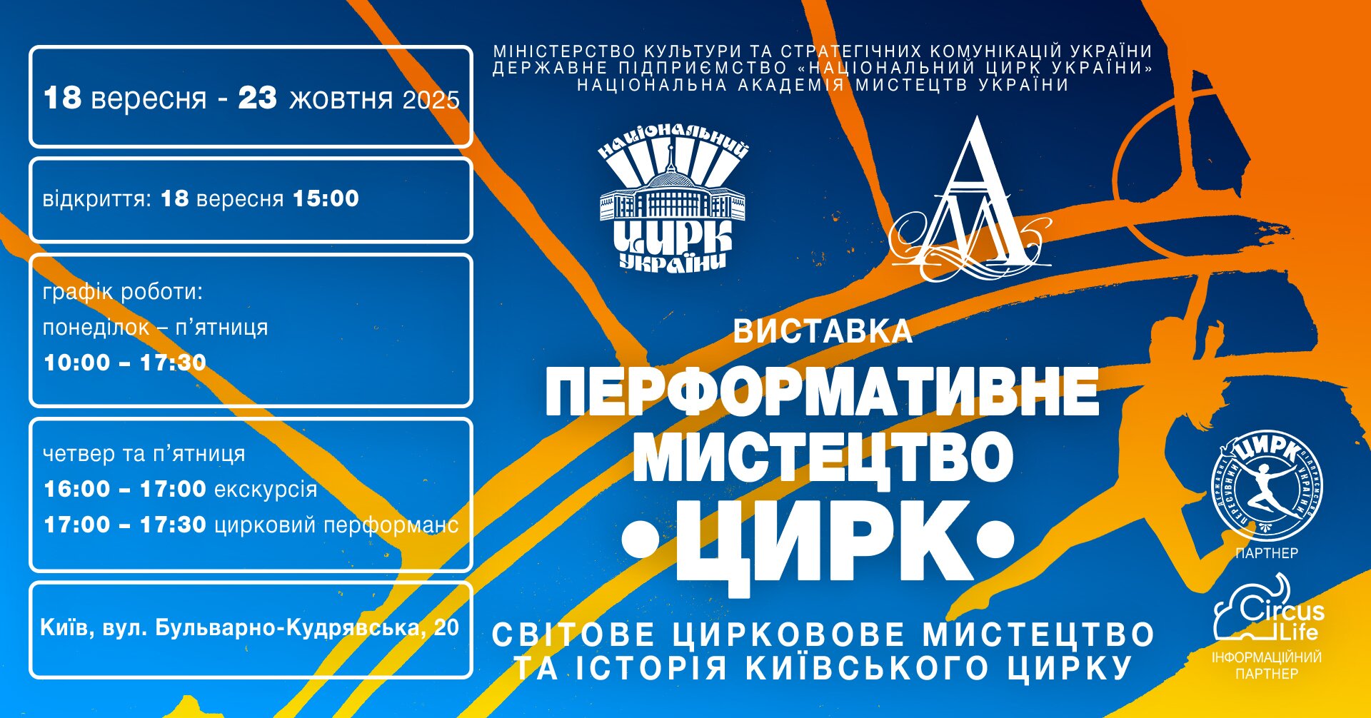 Национальная академия искусств Украины и Национальный цирк Украины приглашают 18 сентября, 15:00, на открытие выставочного художественного проекта «Перформативное искусство. Цирк», который будет проходить в Большом зале НАМ Украины.
