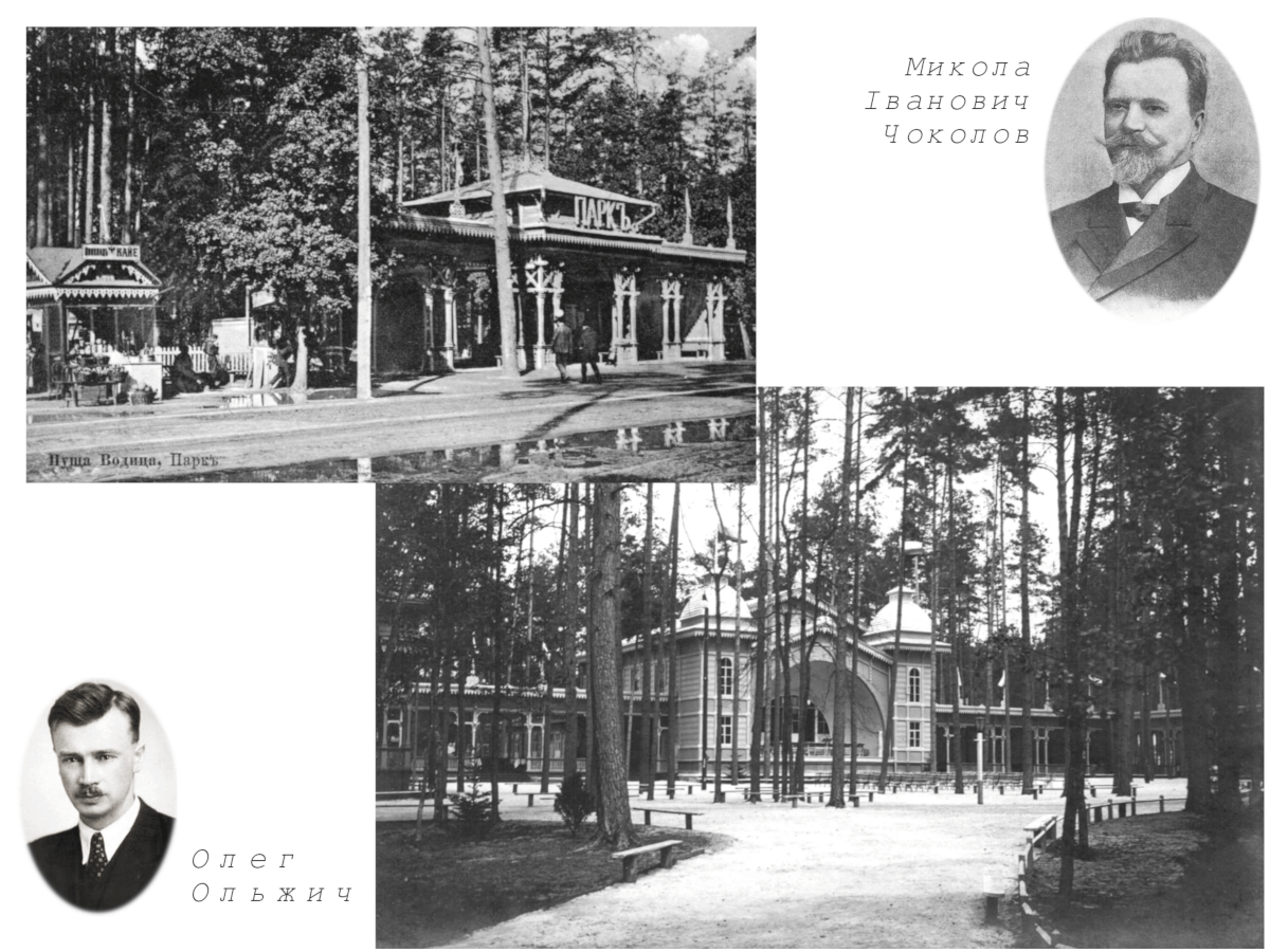 У кінці 1890-х років за ініціативи купця і члена міської думи Миколи Івановича Чоколова тут стартує процес активної забудови. Пуща поступово перетворюється на дачне поселення або ж таке собі місто-сад. Заможні містяни брали собі тут ділянки в оренду на 99 років, зводили дерев’яні дачі, при цьому власником угідь із лісами лишалася Київська міська дума. Цілком зрозуміло, що дозволити такі витрати могли лише заможні кияни. Серед них: підприємці, службовці, купці та інтелігенція. Зокрема, тут мешкав із матір’ю політичний діяч і письменник, син знаменитого поета Олександра Олеся Олег Ольжич.