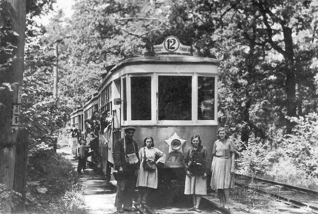 Перший трамвай до Пущі був на паровій тязі (1900 рік), а вже через чотири роки його змінили на електричний. Цікаво, що під час Першої та Другої світових воєн трамвай доставляв на лінію фронту бійців і забирав звідти поранених. А коли в Києві не вистачало палива для обігріву, трамвай привозив необхідну кількість запасу дров.