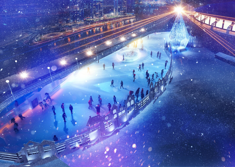 Відкрита ковзанка з безлімітним катанням під музику — варіант для тих, хто хоче провести на льоду весь вечір. Тут можна взяти інструктора або фігурку-помічника, а після катання — зігрітися глінтвейном. На території працює великий фудкорт із м’ясними стравами, рибою та солодощами.