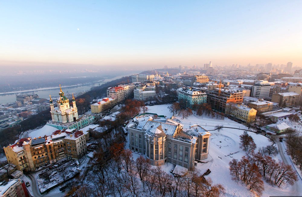 Якщо говорити про зиму, то в цю пору цікаво дивитися на Київ знов-таки з верхніх точок. Це верхня частина
