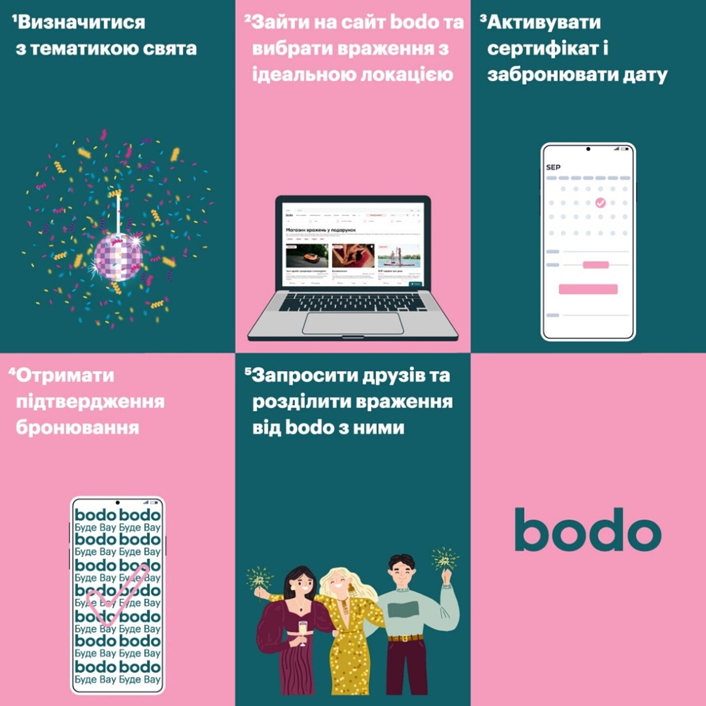 Планування свята для багатьох стає тяжким випробуванням. Проте враження, які відбирає компанія bodo дадуть змогу організувати святкування легше та швидше, а сам ювілей запам’ятається на все життя. Нижче ми підготували для вас покрокову інструкцію, як зробити ваш ювілей ідеальним разом з bodo.