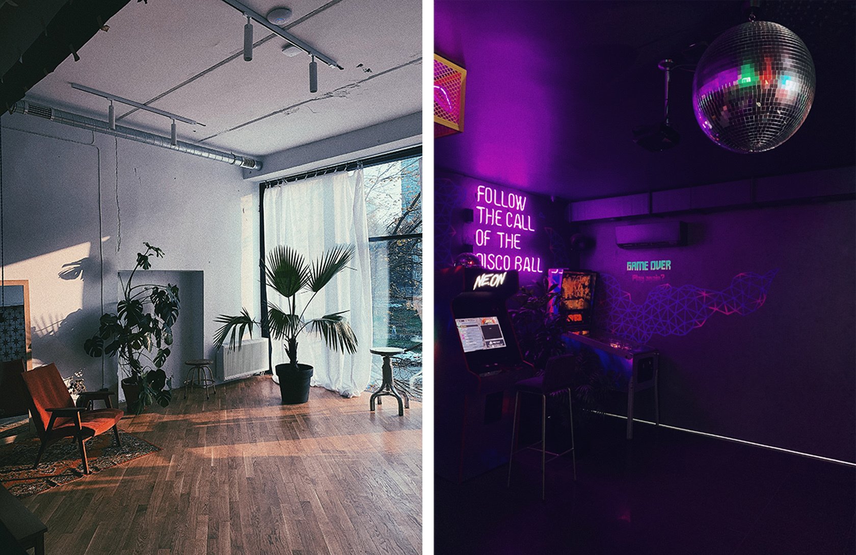 - Pink Punk Art Studio — дах на Пушкінській із краєвидом на дахи Києва. Тут також проходять концерти та події. Локацію можна орендувати під щось своє.