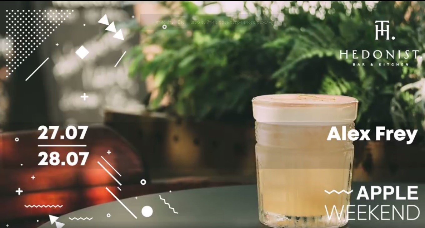 27 та 28 липня Hedonist Bar&Kitchen спокушає вас особисто відчути на собі дію цього забороненого плоду у межах Apple Weekend з коктейлями, що мають домінуючі яблучні нотки — Apple sour за 139₴, а також Macintosh sour та Adam's apple за 149₴ кожний.