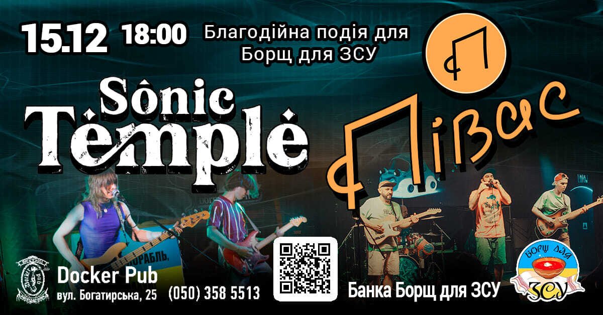 В цей вечір ви почуєте молоді українські гурти The Sonic Temple (м.Київ), Півас (м.Київ) та зможете доєднатись до збору коштів на забезпечення українських військових сухими борщами, супами, кашами, енергетичними батончиками та іншими необхідними продуктами.