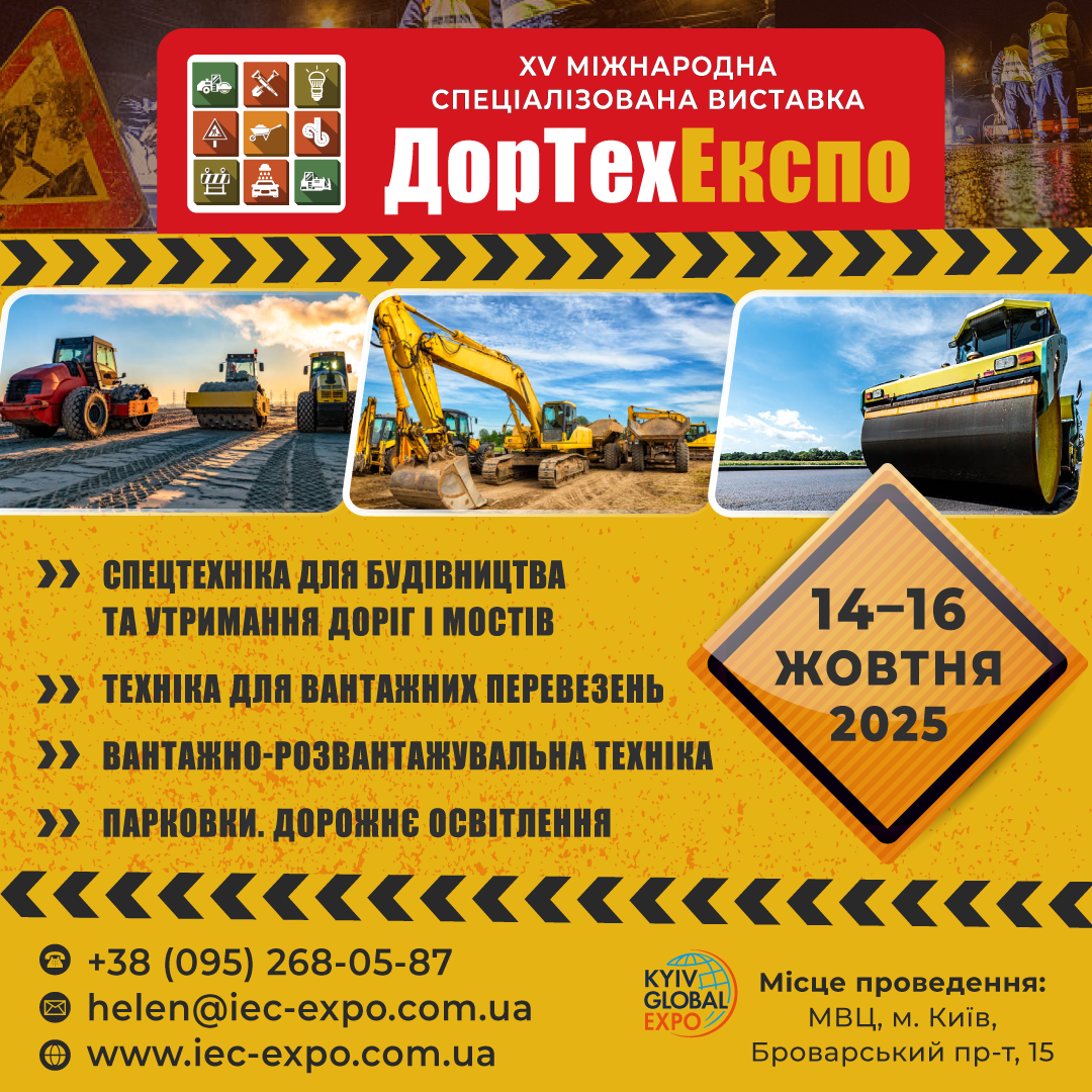 Запрошуємо до участі у Міжнародній виставці технологій і обладнання для дорожнього будівництва – ДорТехЕкспо 2025, що відбудеться 14-16 жовтня в МВЦ, м. Київ!