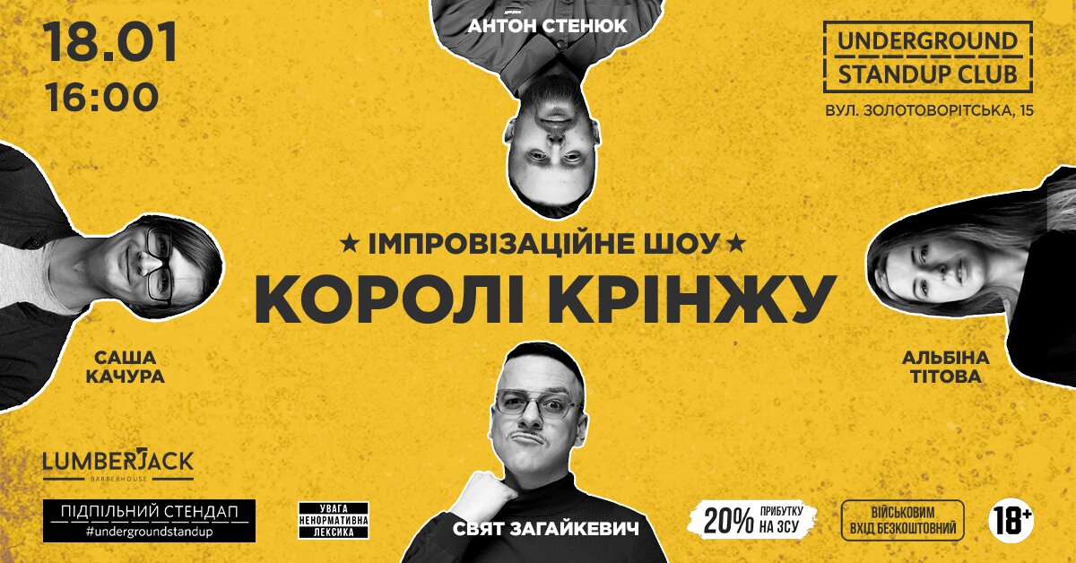Запрошуємо вас на вечір крутої імпровізації «Королі крінжу» від «Підпільного Стендапу!»