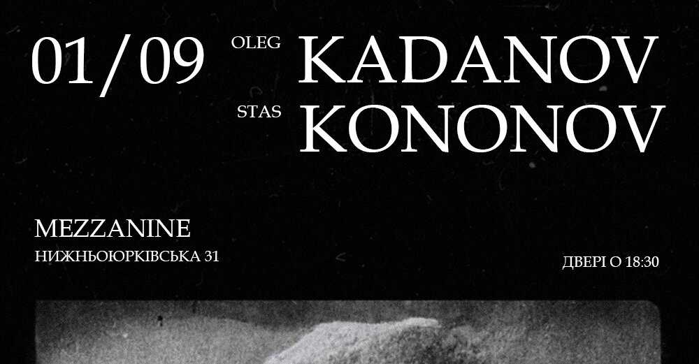 Акустичний гранж, вирощений на прадавніх гуцульських мотивах, лірика зі зведеними від болю щелепами, оптимістична антиутопія та сюрреалістична документалістика - усе це переплітається в піснях та віршах Олега Каданова ("Оркестр Че", "Лінія Маннергейма", "Мантра Керуака"), які прозвучать 1 вересня у MEZZANINE в колаборації з вдумливим та витонченим майстром гітарних справ Стасом Кононовим ("Сергій Бабкін", "pur:pur", "Мои ракеты вверх" та "Оркестр Че").