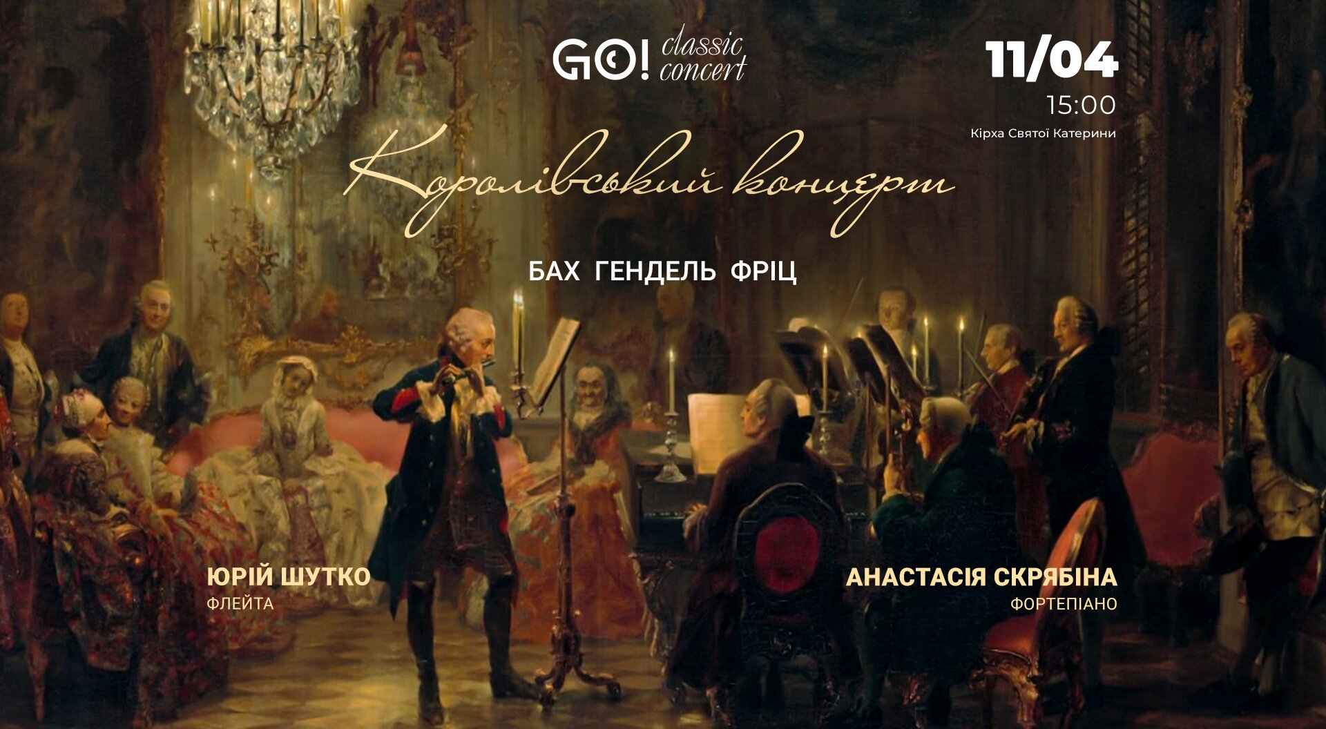 Прусський король Фрідріх Великий (1712 – 1786) був не лише знаним полководцем і великим правителем, а й вправним флейтистом. Твори з його репертуару через 240 років по смерті монарха – 11 квітня 2026 року звучатимуть у неперевершеній акустиці Лютеранської Кірхи в Києві у вишуканій програмі «Королівський концерт». Сонати Й. С. Баха, Г. Ф. Генделя, Г. Фріца та К.Ф.Е. Баха, якими захоплювався монарх, виконають – флейтист Юрій Шутко, заслужений артист України, який єдиний в Україні грає на золотій флейті японської фірми SANKYO і є її обличчям у світі, та піаністка Анастасія Скрябіна.