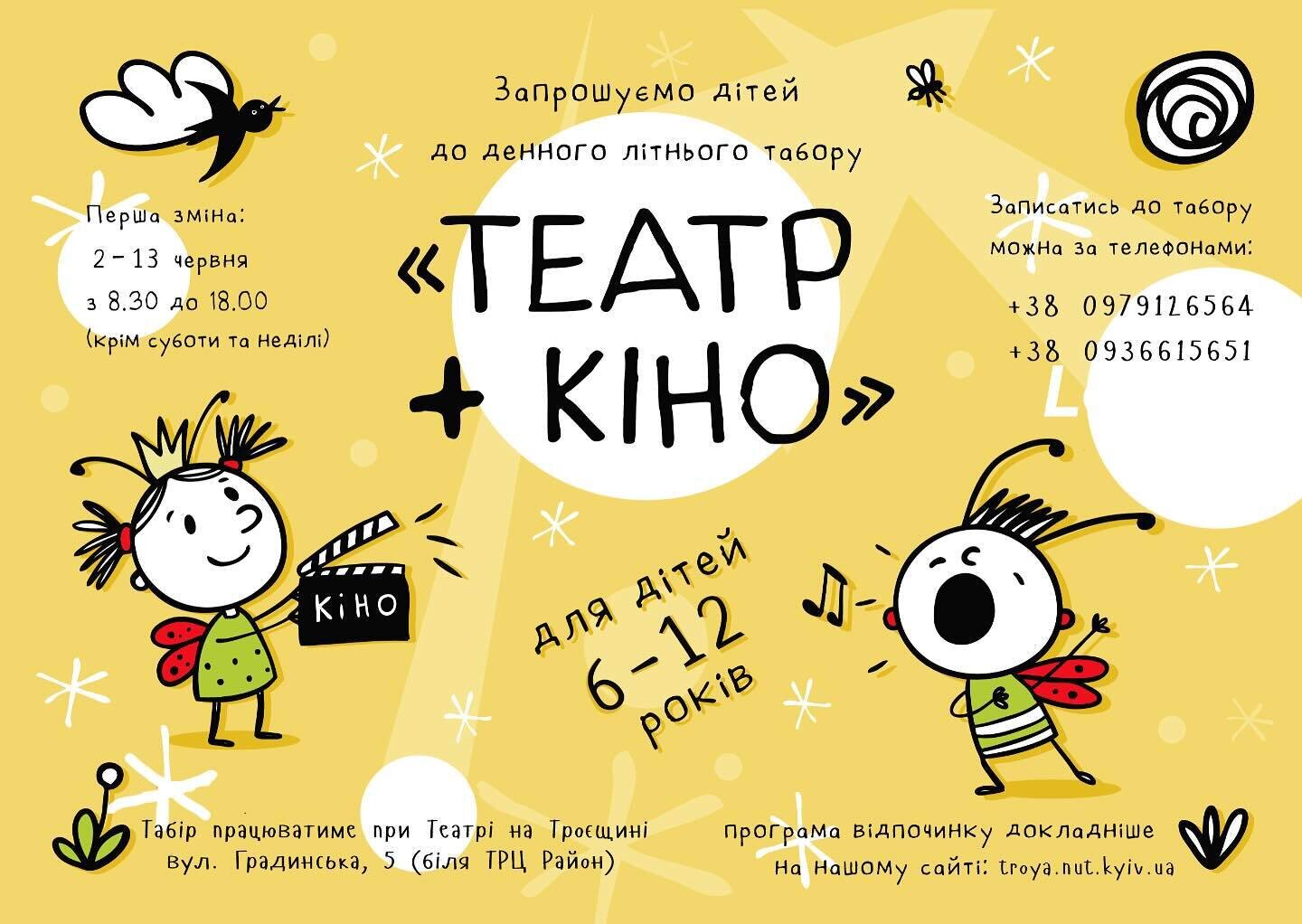 Запрошуємо дітей від 6 до 12 років до творчого денного літнього табору «Театр + Кіно» при Театрі на Троєщині