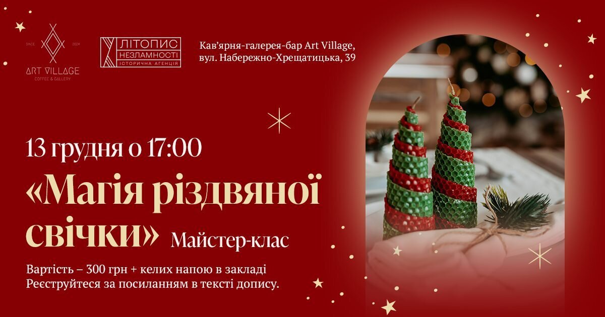Add to calendarУ п’ятницю 13 грудня чаклуємо Різдвяний настрій – традиційну окрасу святвечірнього столу – святкову свічку з естетичним підсвічником на майстер-класі від Літопису Незламності.