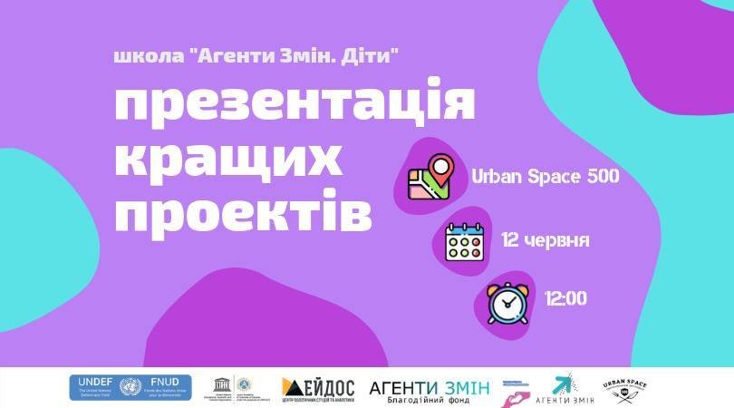 12-го червня агенти змін з різних регіонів України презентують кращі проекти, які вони втілили у своїх містах та селищах. Підлітки поділяться набутим досвідом, розкажуть про труднощі, з якими стикнулися, а також поділяться враженнями та новими знаннями після школи.