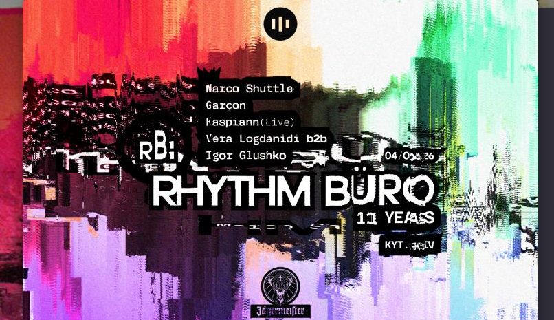 4 квітня ми святкуємо 11 років Rhythm Büro масштабною подією у KYT.KYIV. Вперше з 2022 року ми повертаємося до великої форми — один великий танцпол, зосереджений лайнап та повна концентрація на звуці й світлі. Ми зібрали артистів, які наповнять цей простір справжньою силою, зберігаючи фірмову глибину Rhythm Büro.