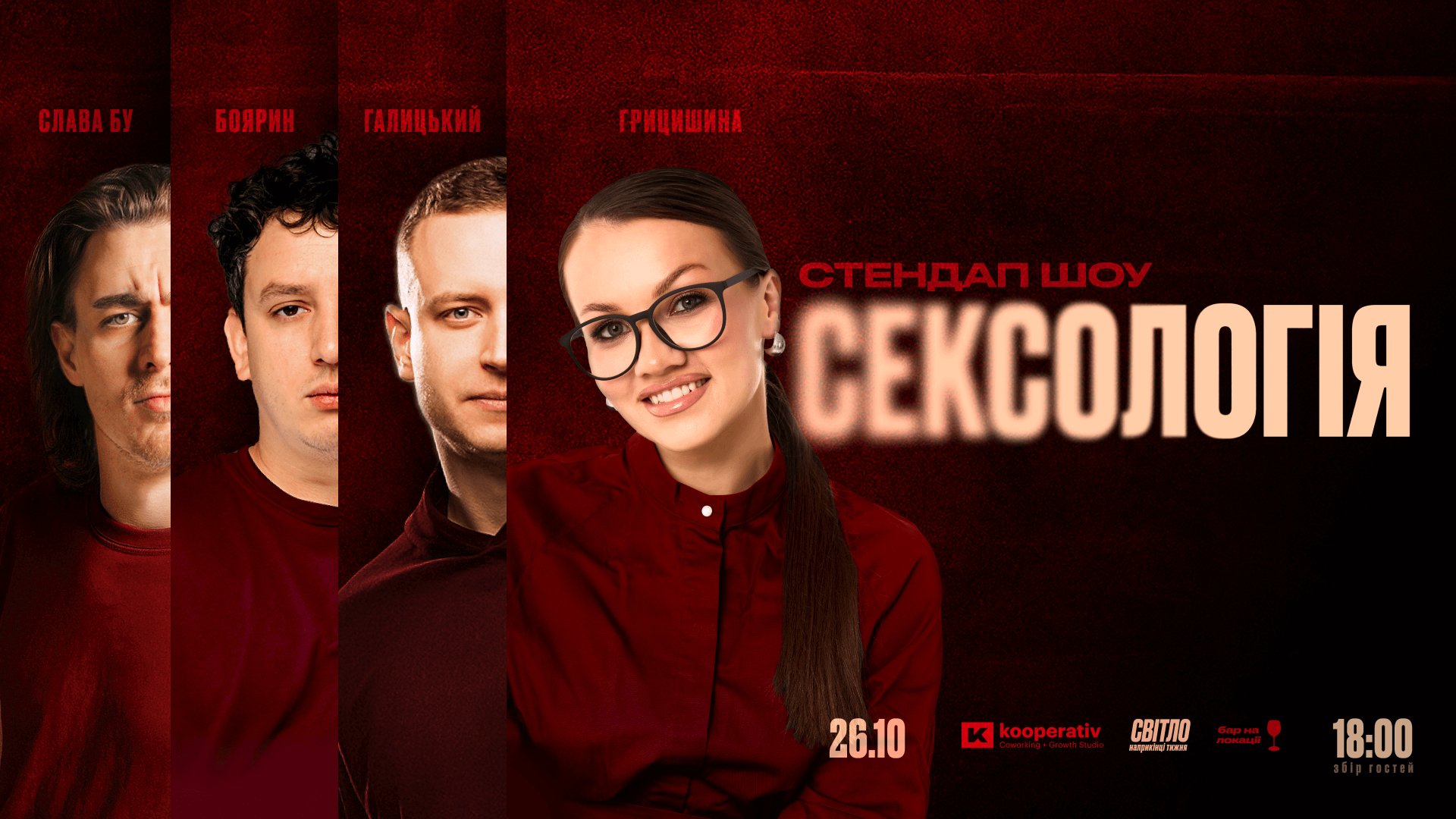 Add to calendarПро шоу: це гумористичний формат, де коміки та сексологиня Мар'яна Грицишина говорять про те, що зазвичай замовчують.