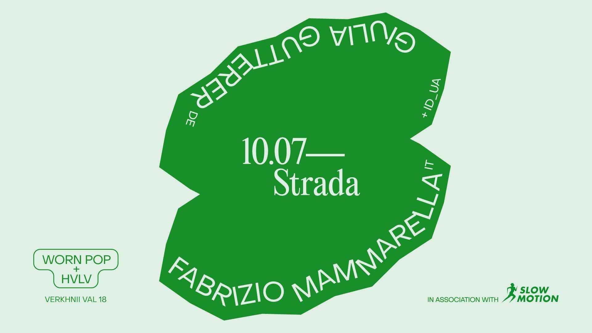 Add to calendarПродовжуємо серію вечірок STRADA — колаборацію бару Хвильовий, агенції Worn Pop та італійського лейблу Slow Motion! Цього разу італійсього дарк диско нам привезуть Fabrizio Mammarella та Giulia Gutterer.