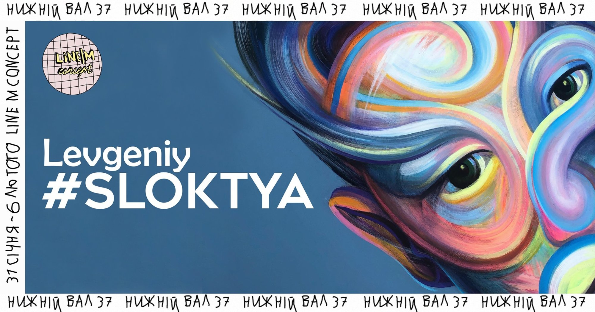 З 31 січня по 6 лютого на стінах Line M concept гості побачать картини, що вже наробили галасу. Художник Евгений Лапченко (Evgeniy Lapchenko) під творчим псевдонімом Levgeniy презентує на огляд публіці декілька своїх робіт, створених в оригінальній та експресивній манері.
