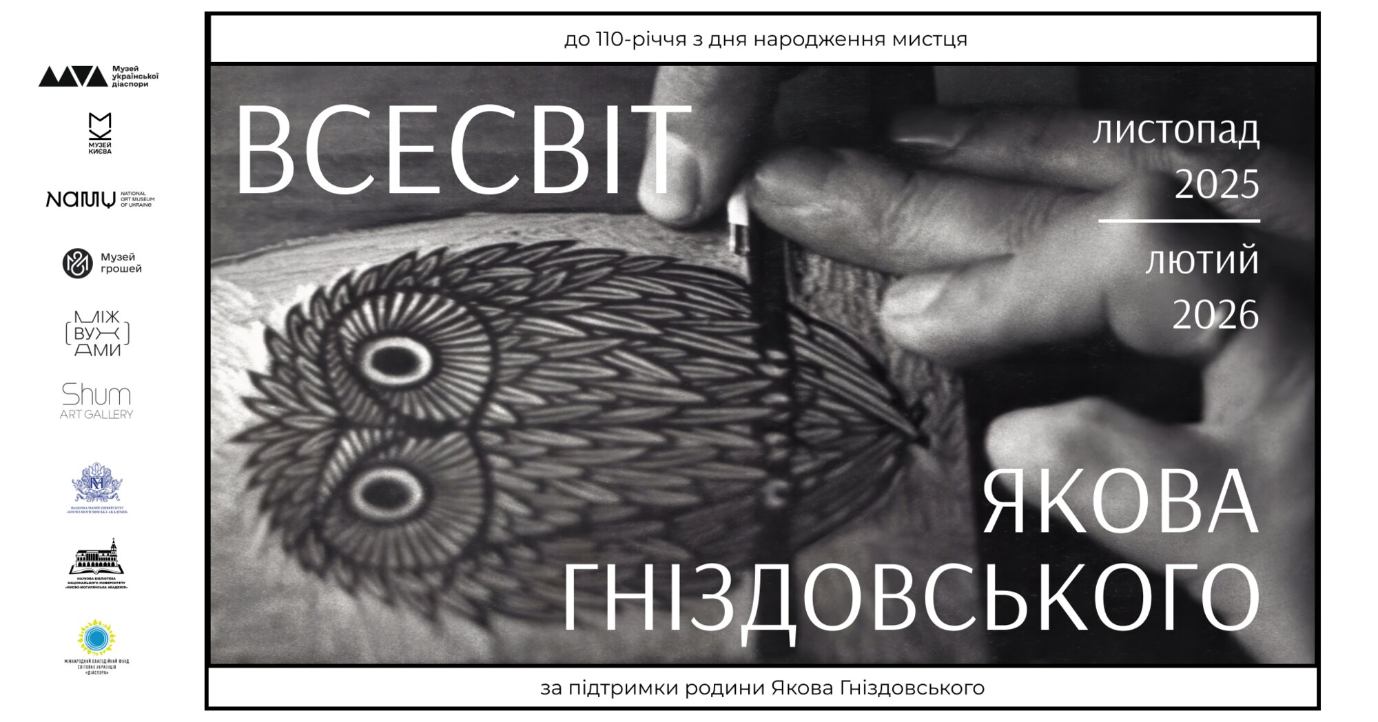 У 2025 році Україна та світ відзначають 110-річчя з дня народження Якова Гніздовського (1915-1985) – українського й американського мистця, одного з найвидатніших художників-графіків ХХ ст., автора унікальних орнаментальних дереворитів. Мистець здобув славу і визнання далеко за межами батьківщини – в еміграції у США. Сьогодні ж його твори входять до зібрань провідних українських і закордонних музейних та приватних колекцій.